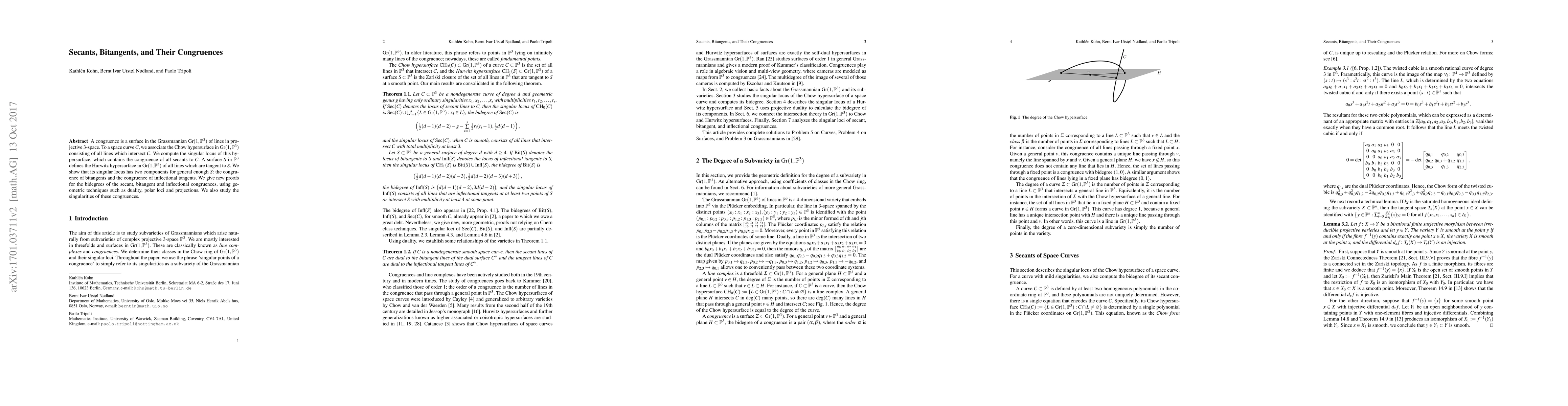 The work offers novel proofs for the bidegrees of secant, bitangent, and inflectional congruences, as well as a detailed analysis of the singularities, distinguishing it from previous research that may not have provided such comprehensive geometric insights.