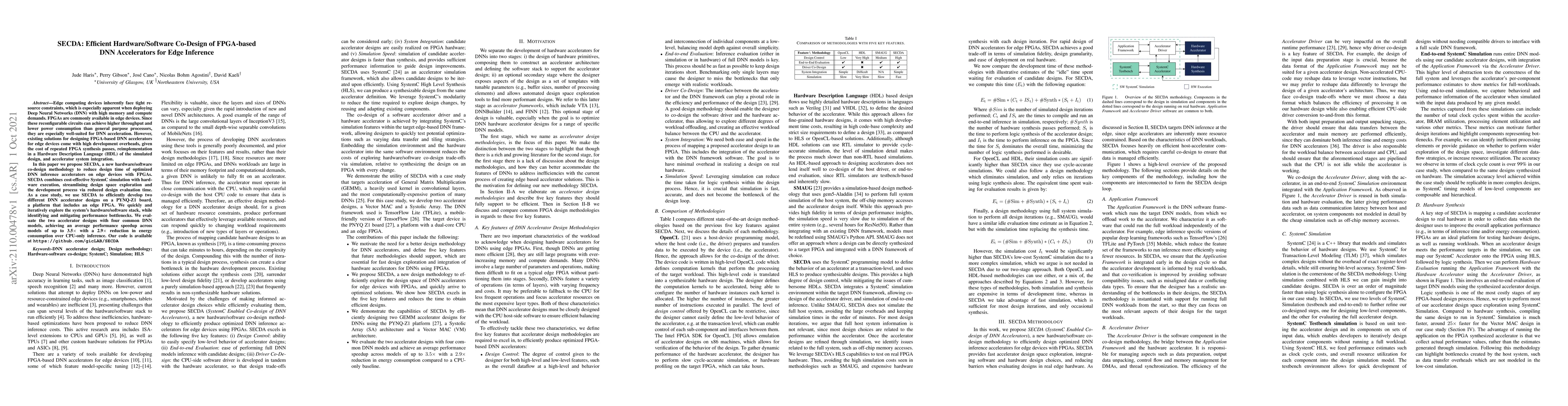 SECDA is a novel hardware/software co-design methodology to expedite the development of FPGA-based DNN accelerators for edge devices, reducing design time and evaluation costs through streamlined design space exploration. The approach achieves an average 3.5× performance speedup and a 2.9× energy reduction compared to CPU-only inference, demonstrated on a PYNQ-Z1 board.