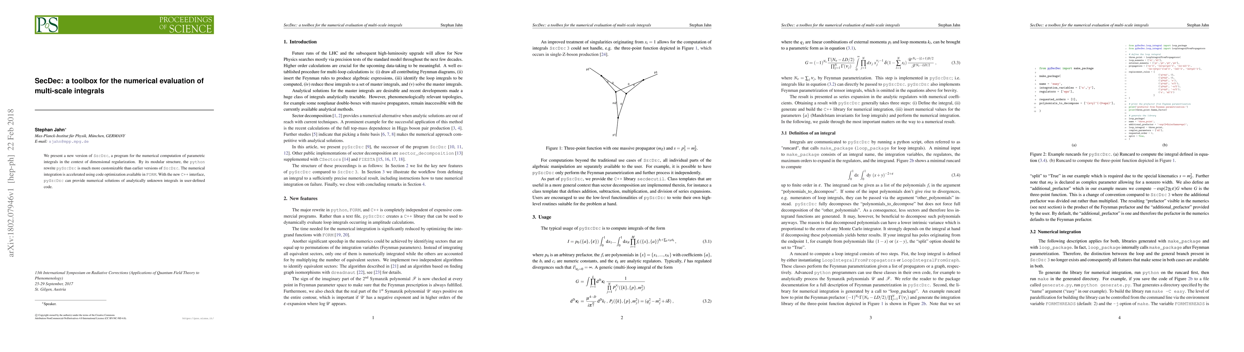 SecDec, now as pySecDec, is a customizable Python-based toolbox for computing parametric integrals in dimensional regularization, leveraging code optimization from FORM and a new C++ interface for handling analytically unknown integrals. It offers enhanced modularity and performance.