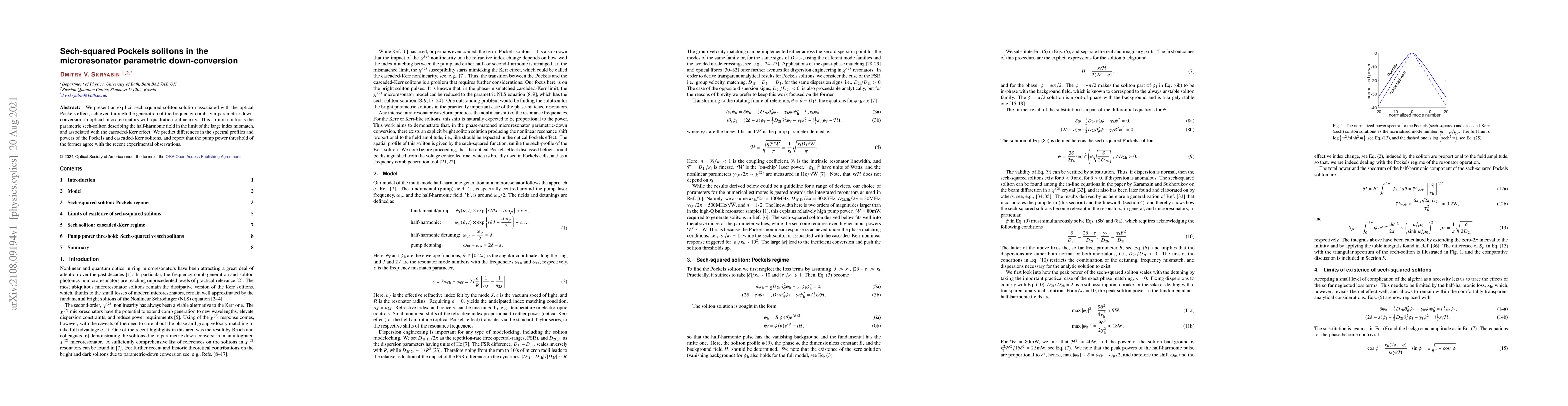 This research proposes a sech-squared soliton solution linked to the optical Pockels effect in microresonators via parametric down-conversion, distinguishing it from cascaded-Kerr solitons. Experimental observations align with the predicted threshold power for Pockels solitons.