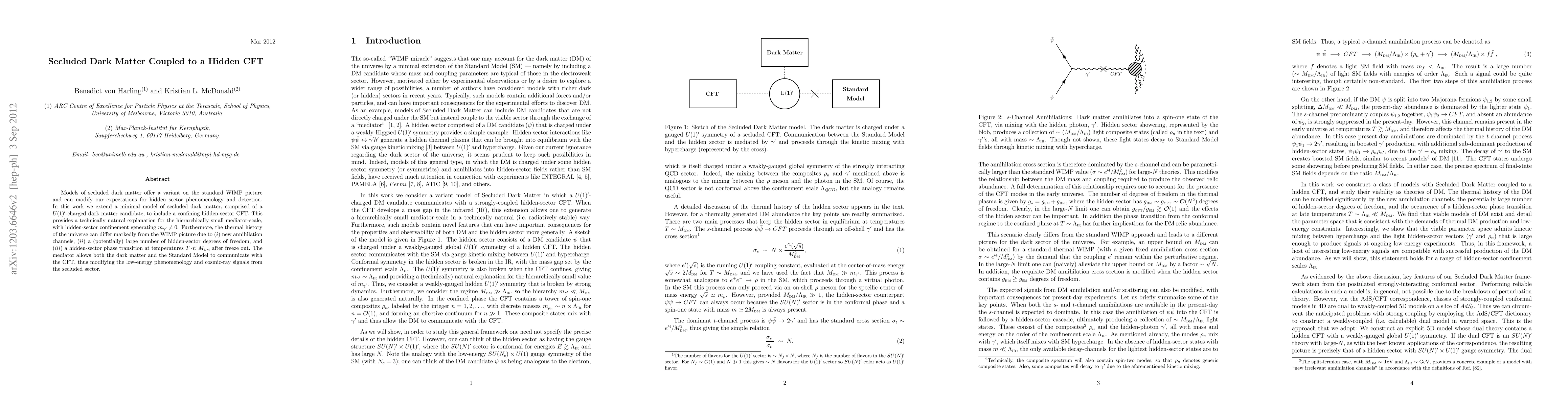 The paper introduces a secluded dark matter model coupled to a hidden-sector CFT, providing a technically natural explanation for the hierarchically small mediator scale and modifying both low-energy phenomenology and cosmic-ray signals through the mediator's interaction with both dark matter and the Standard Model.