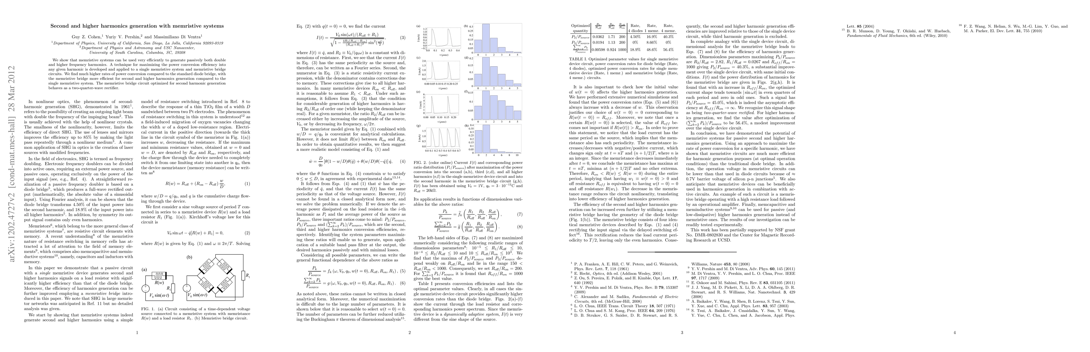 This paper demonstrates that memristive systems can efficiently generate double and higher harmonics passively, with a developed technique maximizing power conversion efficiency. The memristive bridge circuit shows superior efficiency for second and higher harmonics compared to a single memristive system and traditional diode bridges, functioning as a two-quarter-wave rectifier.