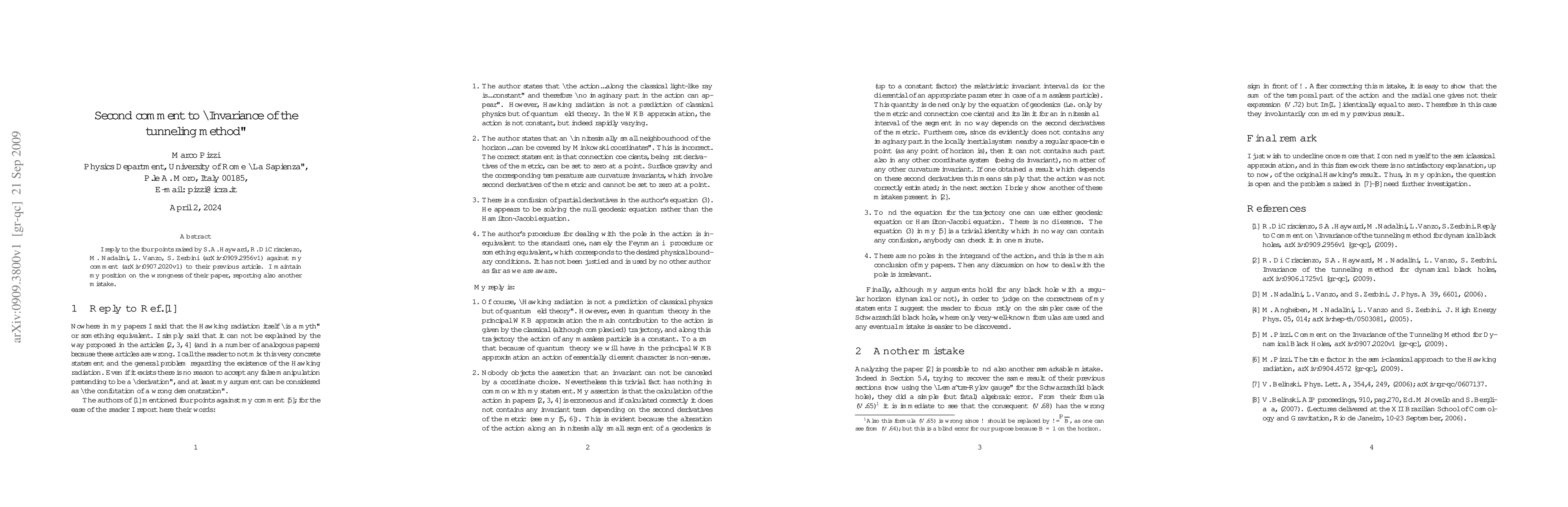I reply to the four points raised by S. A. Hayward, R. Di Criscienzo, M. Nadalini, L. Vanzo, S. Zerbini (arXiv:0909.2956v1) against my comment (arXiv:0907.2020v1) to their previous article. I maintain my position on the wrongness of their paper, reporting also another mistake.