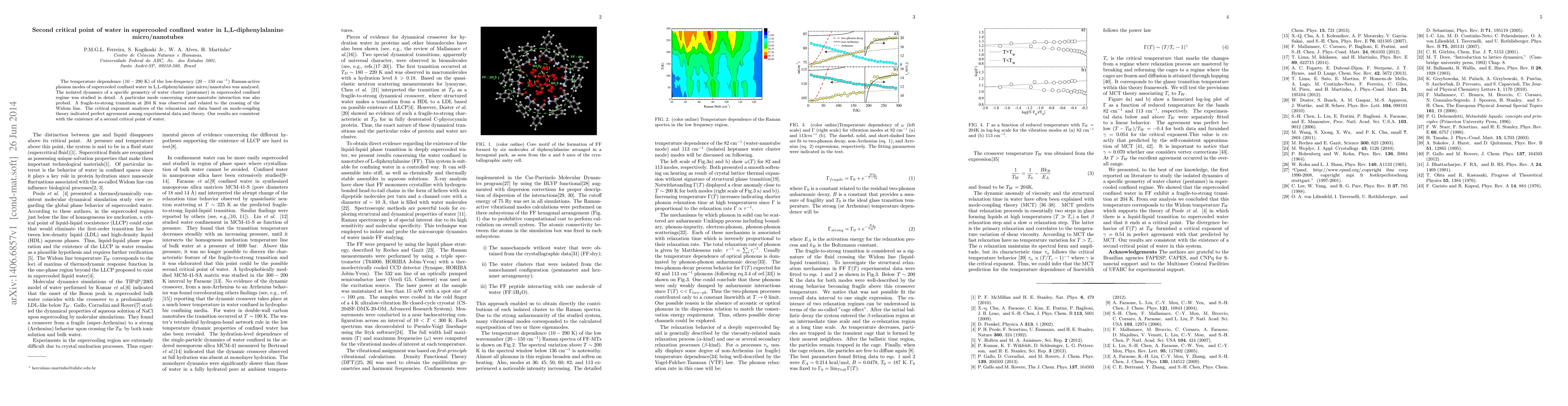 This study investigates the Raman-active phonon modes of supercooled water confined within L,L-diphenylalanine micro/nanotubes, revealing a fragile-to-strong transition at 204 K linked to a second critical point of water, supported by mode-coupling theory. The findings suggest a unique interaction between water and the nanotube structure.