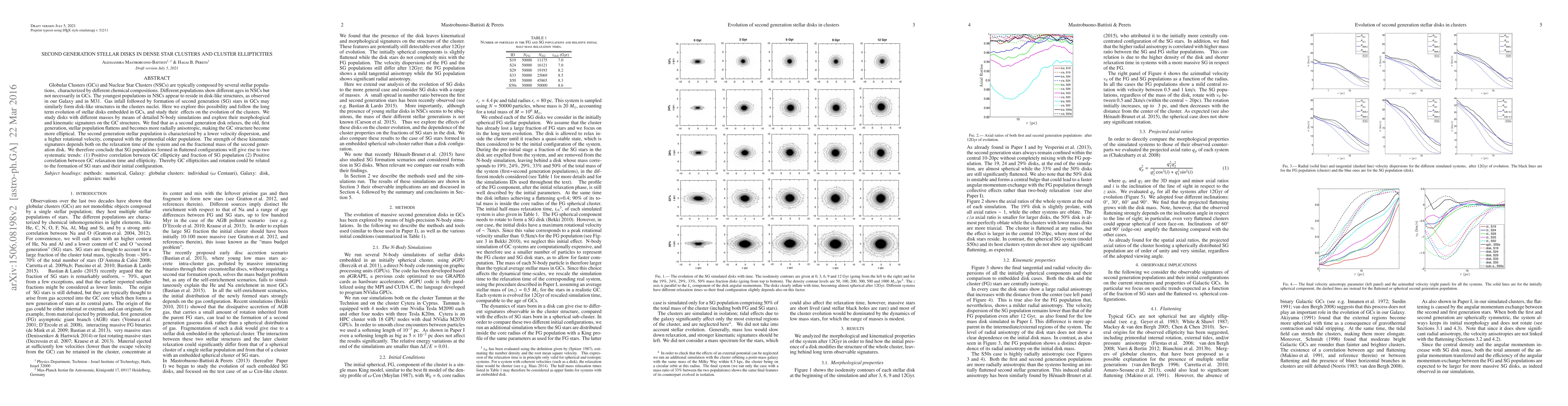 This paper investigates the formation and evolution of second generation stellar disks in dense star clusters, finding that these disks cause the clusters to become more elliptical over time. Through N-body simulations, it shows that the relaxation of second generation disks flattens the first generation population, leading to a positive correlation between cluster ellipticity and the fraction of second generation stars.