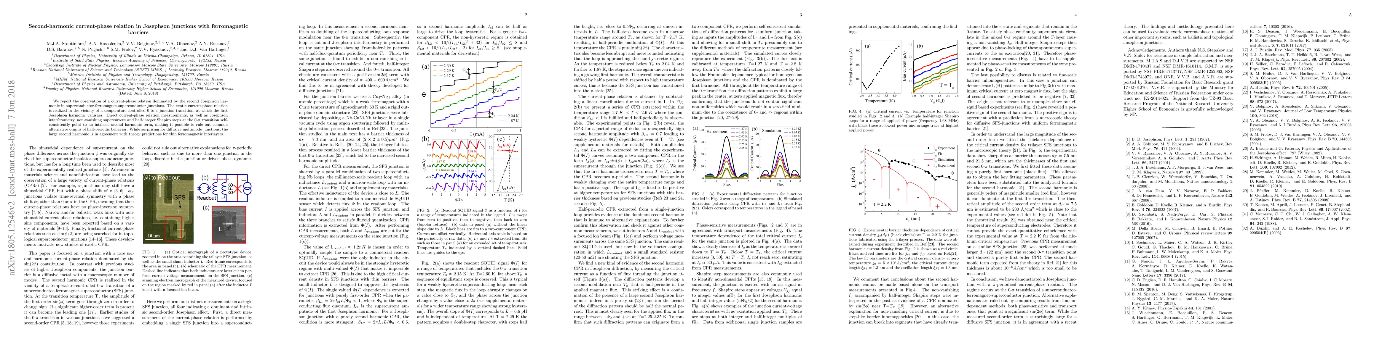 This paper reports the observation of a dominant second-harmonic current-phase relation in superconductor-ferromagnet-superconductor junctions near a temperature-controlled 0-to-$\pi$ transition, where the first harmonic vanishes. Theoretical predictions for thin ferromagnetic interlayers align with the findings, ruling out alternative origins of half-periodic behavior.