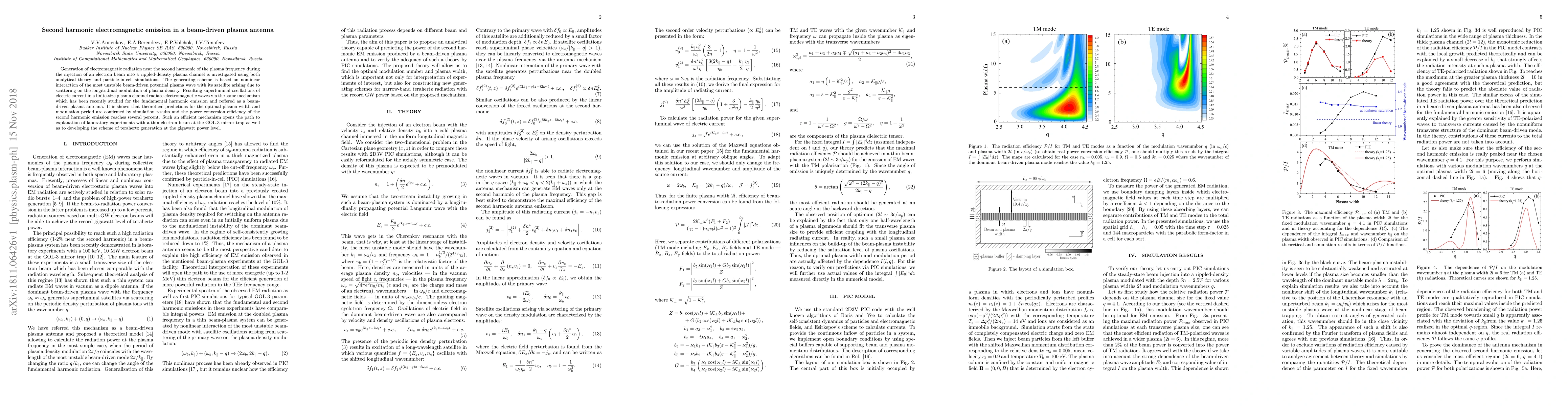This paper investigates the generation of second harmonic electromagnetic radiation in a beam-driven plasma antenna, confirming theoretical predictions through simulations. The mechanism involves nonlinear interaction of plasma waves, achieving high efficiency and potential for terahertz generation at gigawatt power levels.