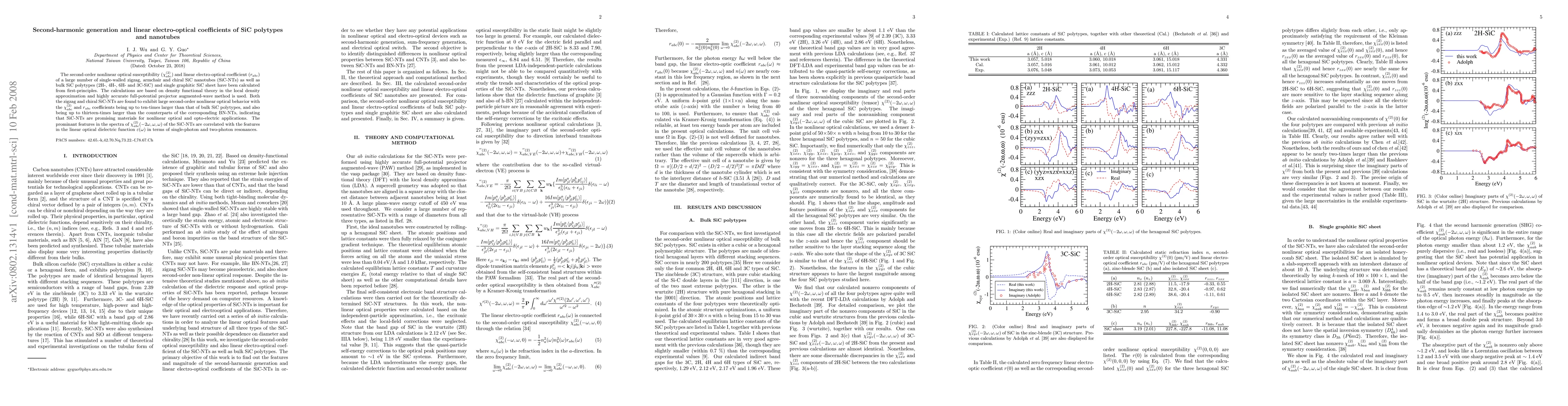 This paper calculates the second-order nonlinear optical susceptibility and linear electro-optical coefficients of various SiC nanotubes and polytypes using first-principles density functional theory. Zigzag and chiral SiC nanotubes show significantly larger nonlinear optical properties compared to bulk SiC polytypes and BN nanotubes, suggesting their potential for opto-electric applications.