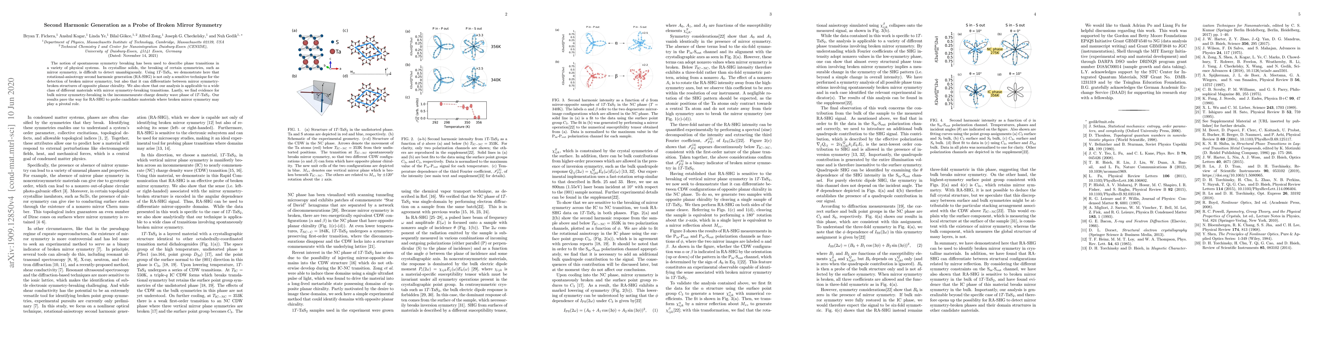 This paper demonstrates that rotational-anisotropy second harmonic generation (RA-SHG) is a sensitive method for detecting broken mirror symmetry in crystalline solids, using 1$T$-TaS$_2$ as a case study. It shows that RA-SHG can distinguish between different types of mirror symmetry-broken structures and suggests its applicability to a broad range of materials.