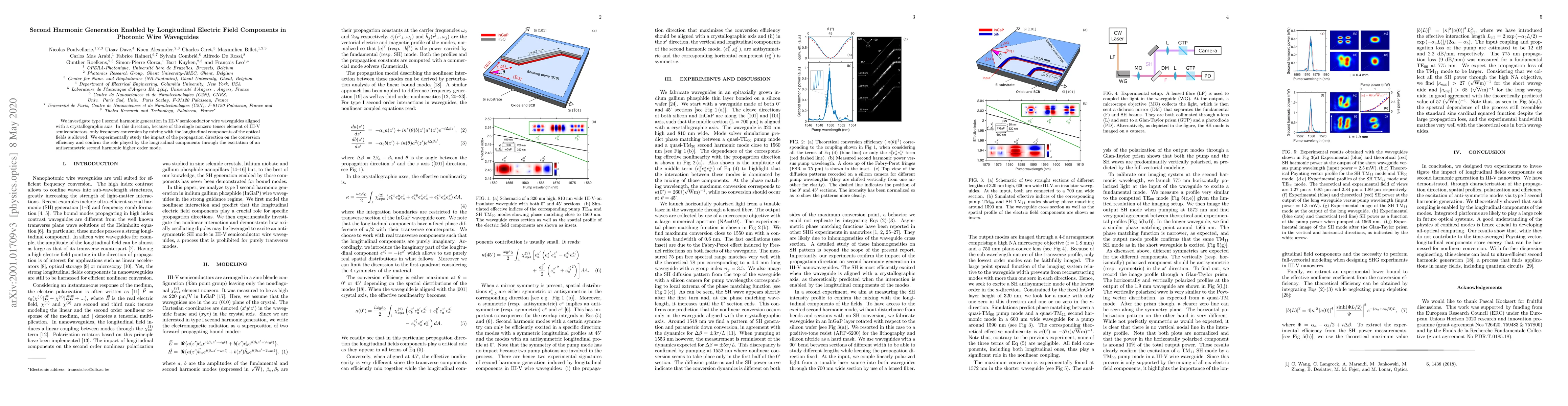 This paper explores type I second harmonic generation in III-V semiconductor wire waveguides, focusing on the role of longitudinal electric field components. Experimental results confirm that the efficiency of frequency conversion is significantly influenced by the propagation direction and the presence of longitudinal optical field components.