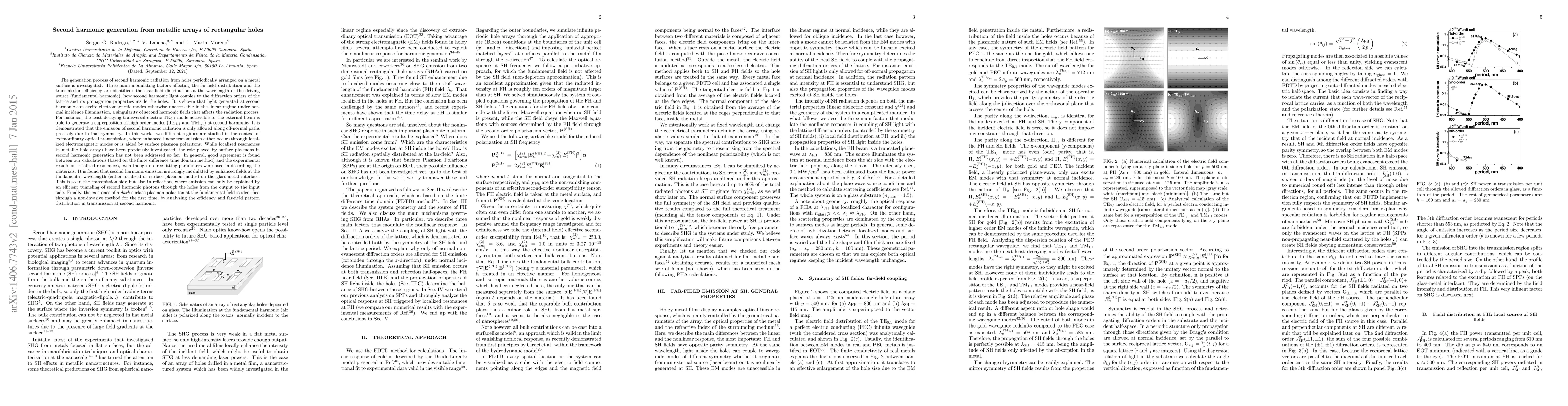 Researchers study how light generates second harmonic radiation from metallic arrays of rectangular holes, discovering that SH light can excite previously inaccessible electromagnetic modes and is strongly modulated by enhanced fields at the fundamental wavelength.