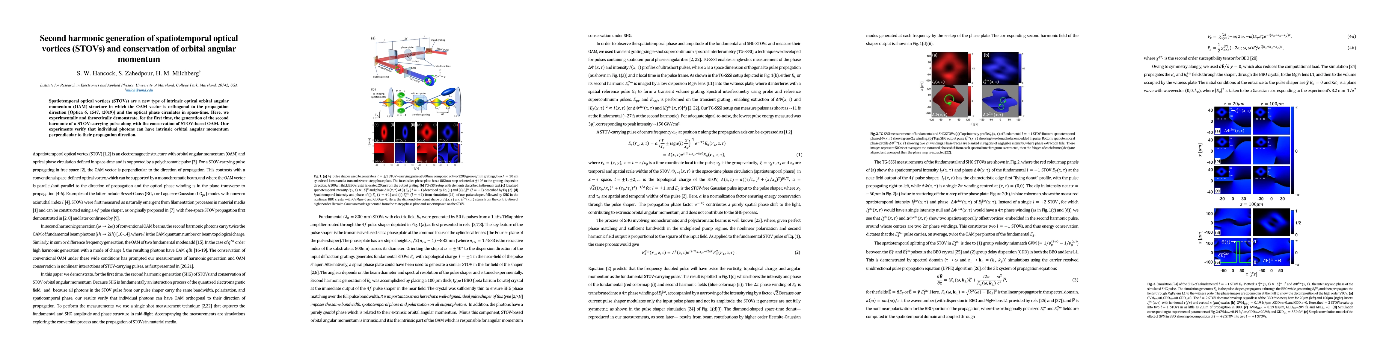 This paper demonstrates the generation of the second harmonic of spatiotemporal optical vortices (STOVs) while conserving their orbital angular momentum (OAM). The study confirms that individual photons can possess intrinsic OAM perpendicular to their propagation direction, highlighting the potential for advanced optical manipulation.