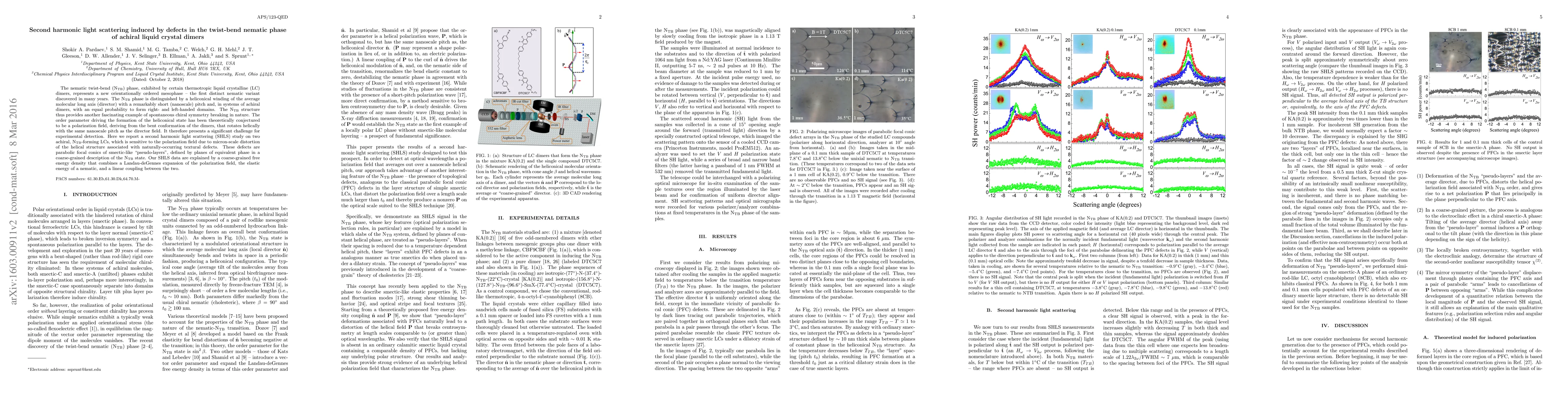 This study investigates the $\mathrm{N_{TB}}$ phase of liquid crystal dimers using second harmonic light scattering (SHLS) to detect the polarization field associated with defects. The findings reveal that the helical structure's micron-scale distortions due to textural defects can be detected via SHLS, providing insights into the polarization field's role in the $\mathrm{N_{TB}}$ phase.