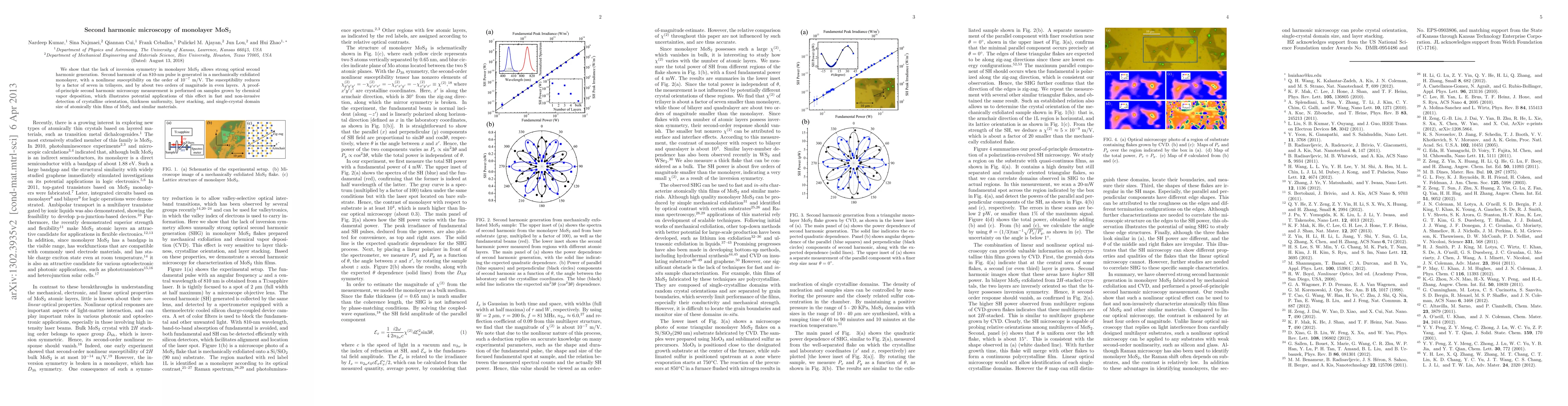 This paper demonstrates strong optical second harmonic generation in monolayer MoS2 due to its lack of inversion symmetry, with a nonlinear susceptibility of 1E-7 m/V. A proof-of-principle microscopy measurement indicates potential for non-invasive detection of MoS2's crystalline orientation and layer properties.