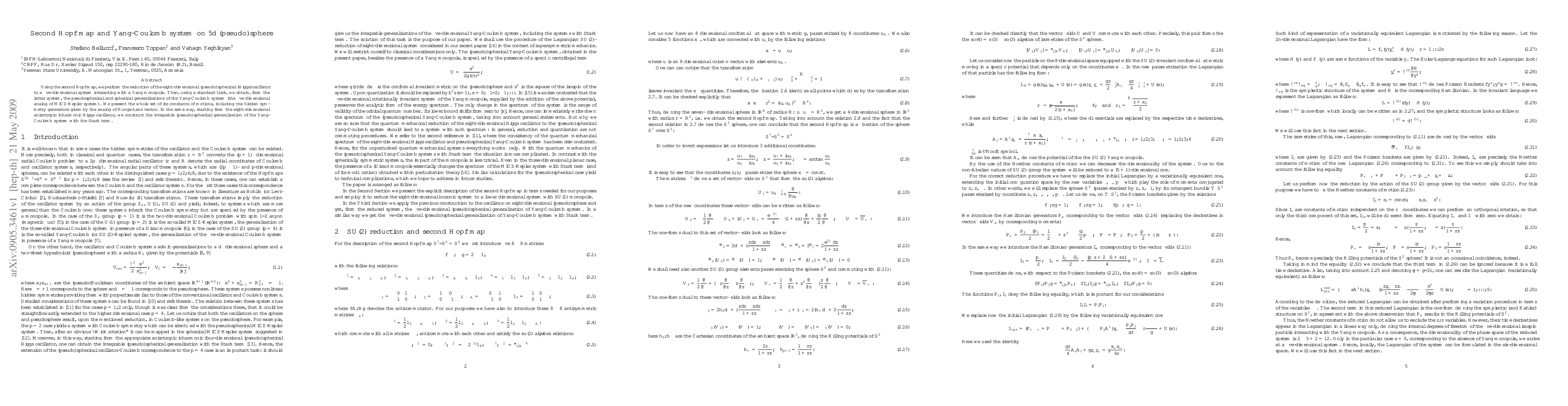 This paper utilizes the second Hopf map to reduce an eight-dimensional (pseudo)spherical Higgs oscillator to a five-dimensional Yang monopole system, subsequently deriving the pseudospherical and spherical generalizations of the Yang-Coulomb system. The study presents a complete set of its constants of motion, including hidden symmetry generators analogous to the Runge-Lenz vector.