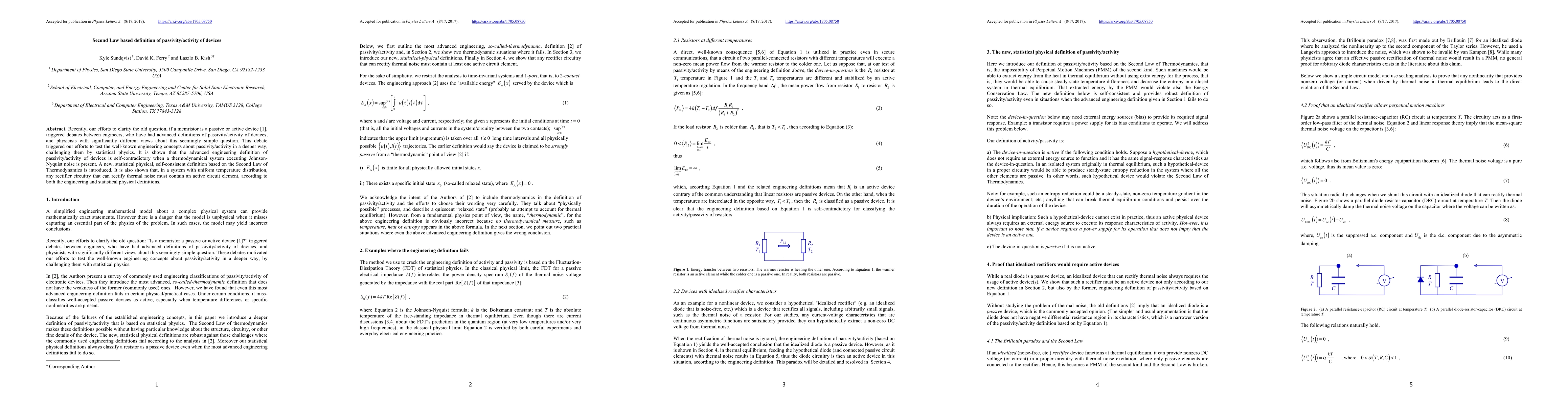 This paper introduces a new, statistical physical definition of passivity/activity based on the Second Law of Thermodynamics, resolving debates about whether memristors are passive or active devices. It demonstrates that the traditional engineering definitions are inconsistent when applied to systems with Johnson-Nyquist noise, and concludes that any thermal noise rectification requires an active element.