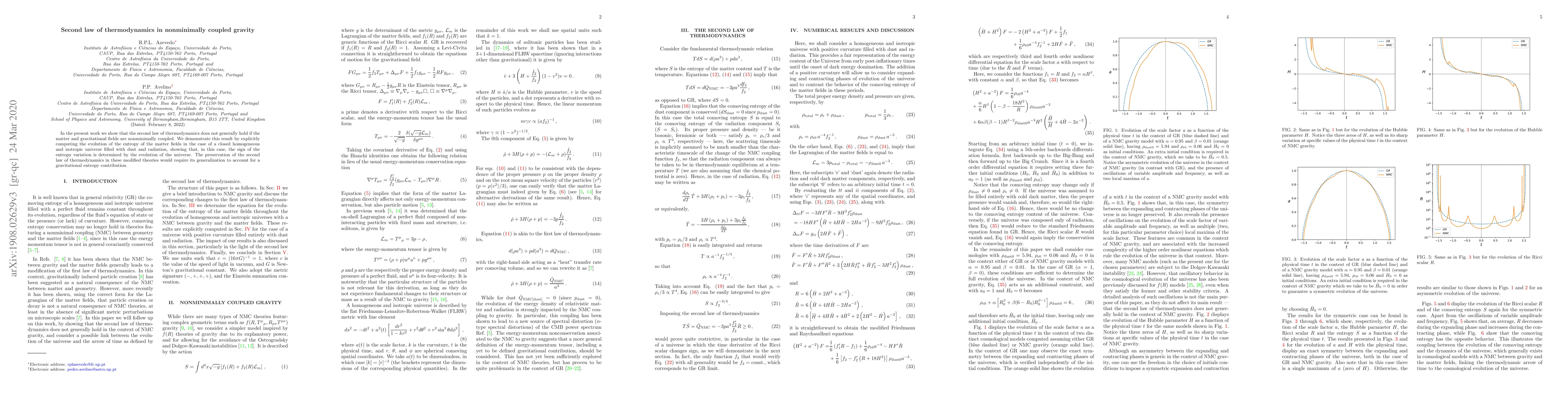 This paper demonstrates that the second law of thermodynamics fails in nonminimally coupled gravity, as shown through the evolution of matter entropy in a closed, homogeneous, and isotropic universe. To preserve the second law, a gravitational entropy contribution must be considered.