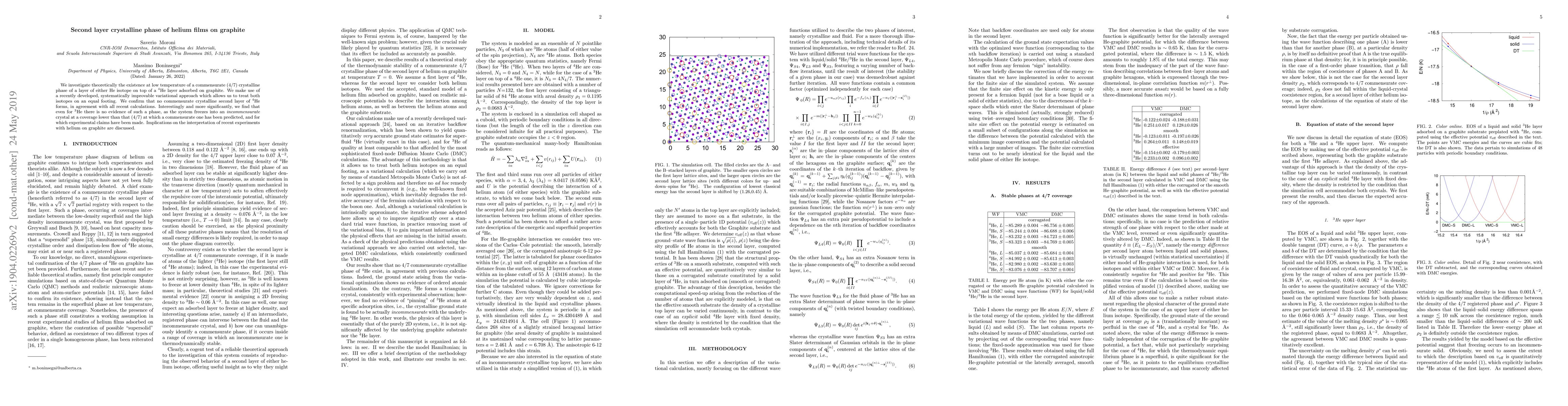 This paper theoretically investigates the possibility of a second layer crystalline phase of helium isotopes on graphite, finding no evidence for a commensurate (4/7) phase for either He-4 or He-3. Instead, the system forms an incommensurate crystal at lower coverage, challenging recent experimental claims.