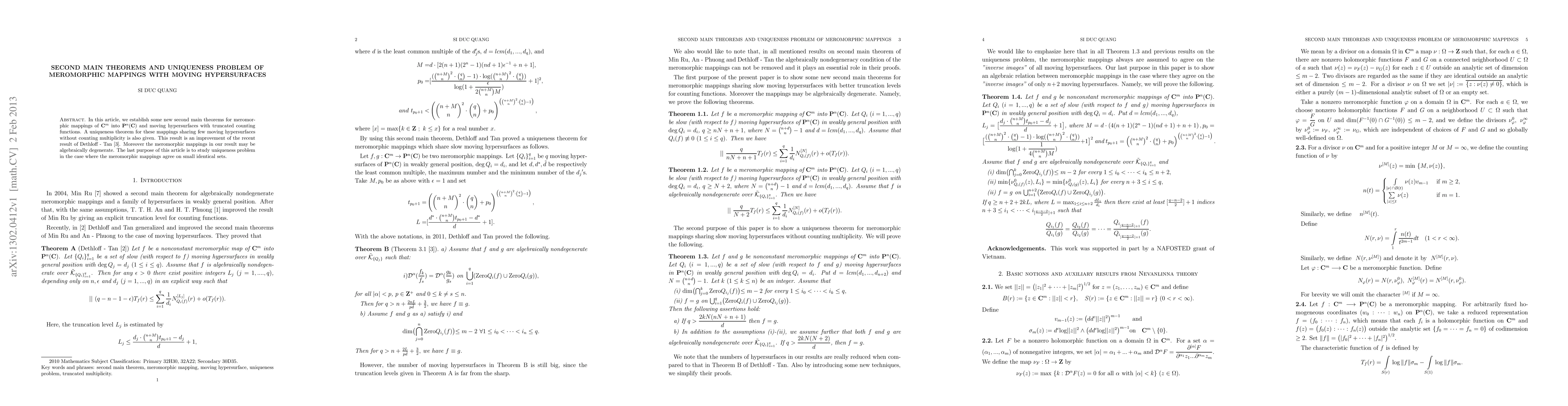 This paper establishes new second main theorems for meromorphic mappings involving moving hypersurfaces and truncated counting functions, improves upon previous results, and includes a uniqueness theorem for mappings sharing few hypersurfaces. Additionally, it examines the uniqueness problem when mappings coincide on small identical sets.