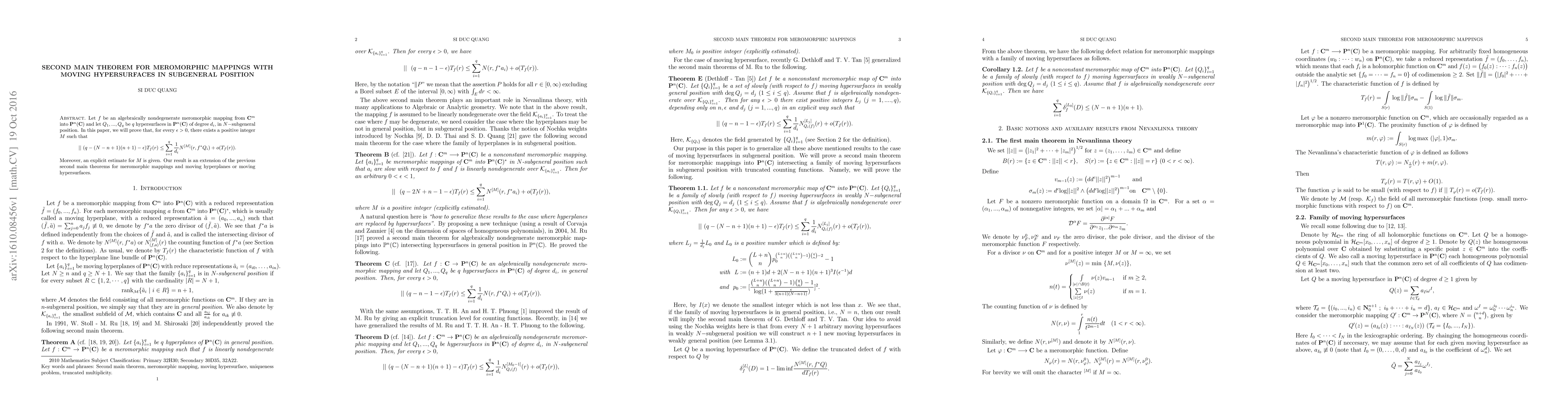 This paper extends the second main theorem for meromorphic mappings to cases involving hypersurfaces in subgeneral position, proving a new inequality that relates the mapping's growth to the counting functions of intersections with these hypersurfaces. An explicit estimate for the integer \(M\) is also provided.