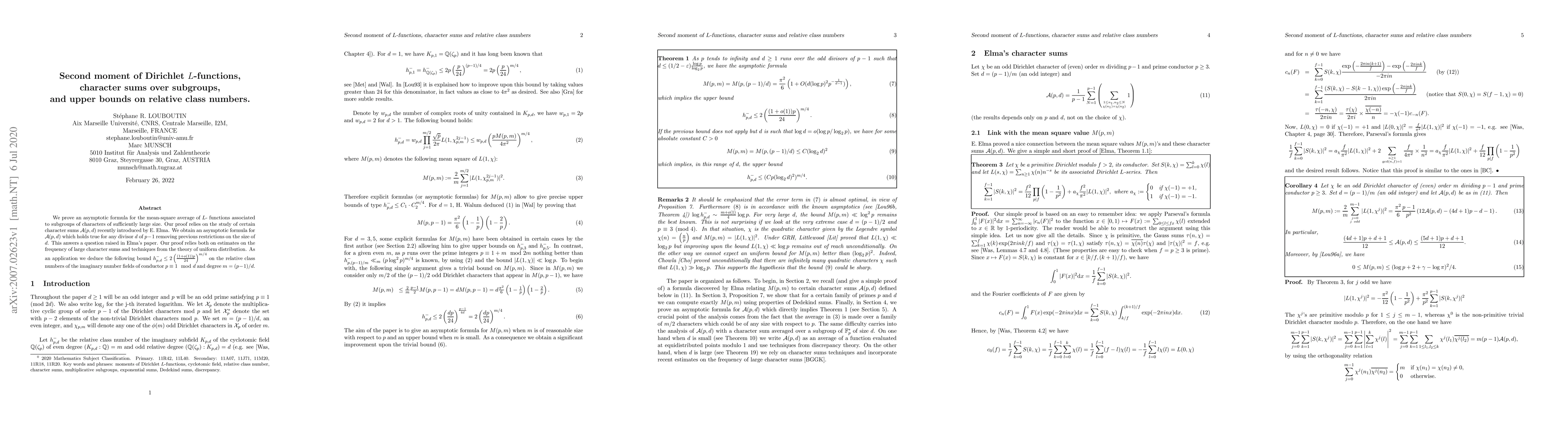 This paper establishes an asymptotic formula for the mean-square average of Dirichlet $L$-functions linked to character subgroups, using character sums ${\cal A}(p,d)$ and techniques from uniform distribution. It also provides an upper bound on relative class numbers for certain imaginary number fields.