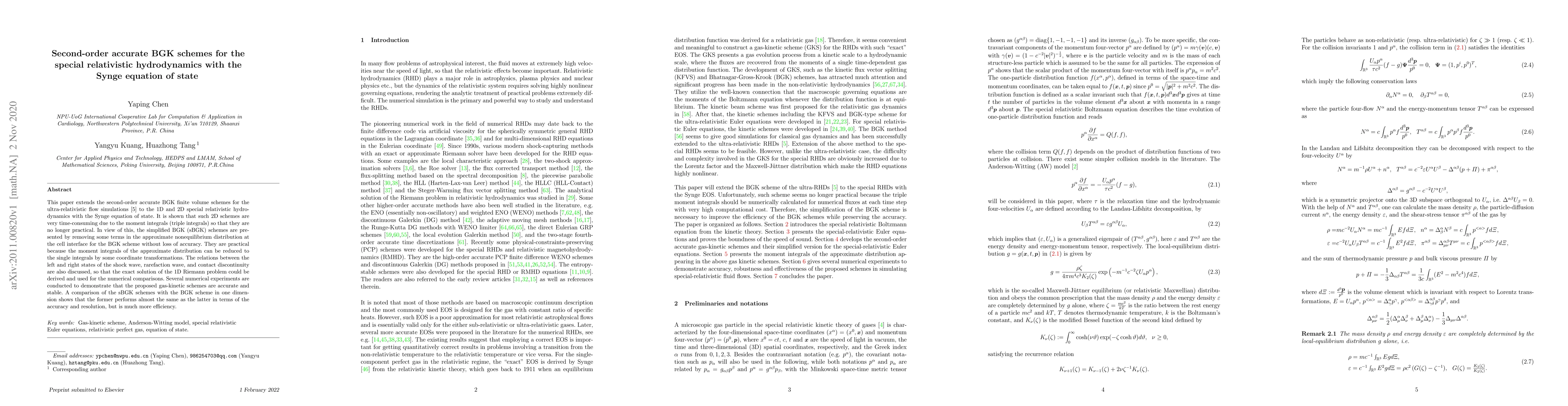 This paper develops second-order accurate BGK finite volume schemes for 1D and 2D special relativistic hydrodynamics using the Synge equation of state, introducing simplified BGK (sBGK) schemes to improve computational efficiency by reducing moment integrals to single integrals. Numerical experiments confirm the accuracy and stability of the proposed schemes.