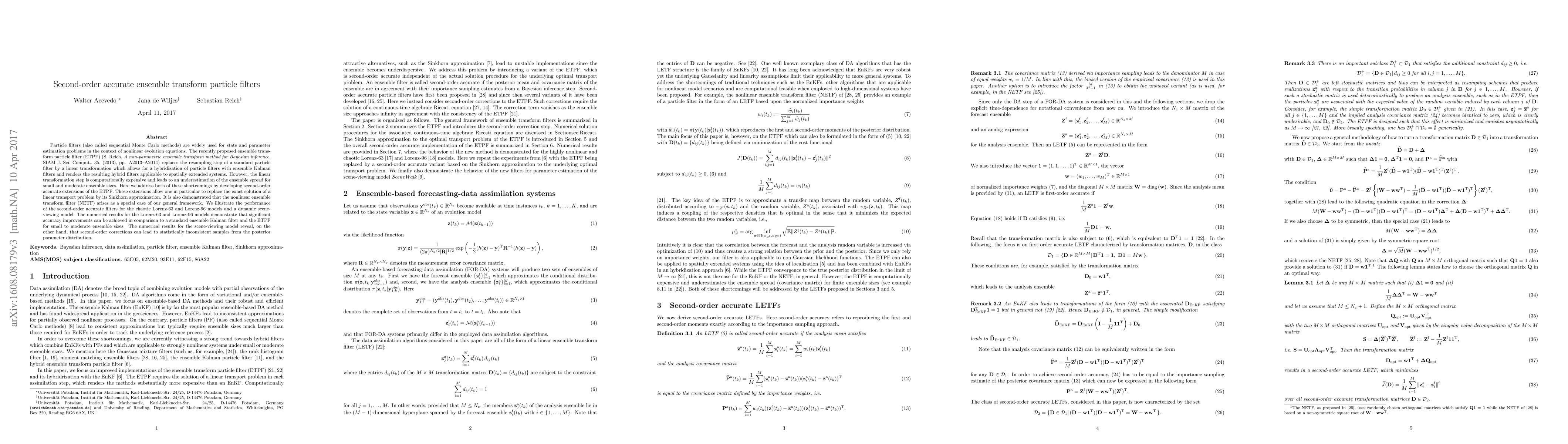 Researchers developed second-order accurate ensemble transform particle filters to address computational efficiency and underestimation of ensemble spread, achieving significant accuracy improvements over existing methods in certain models.