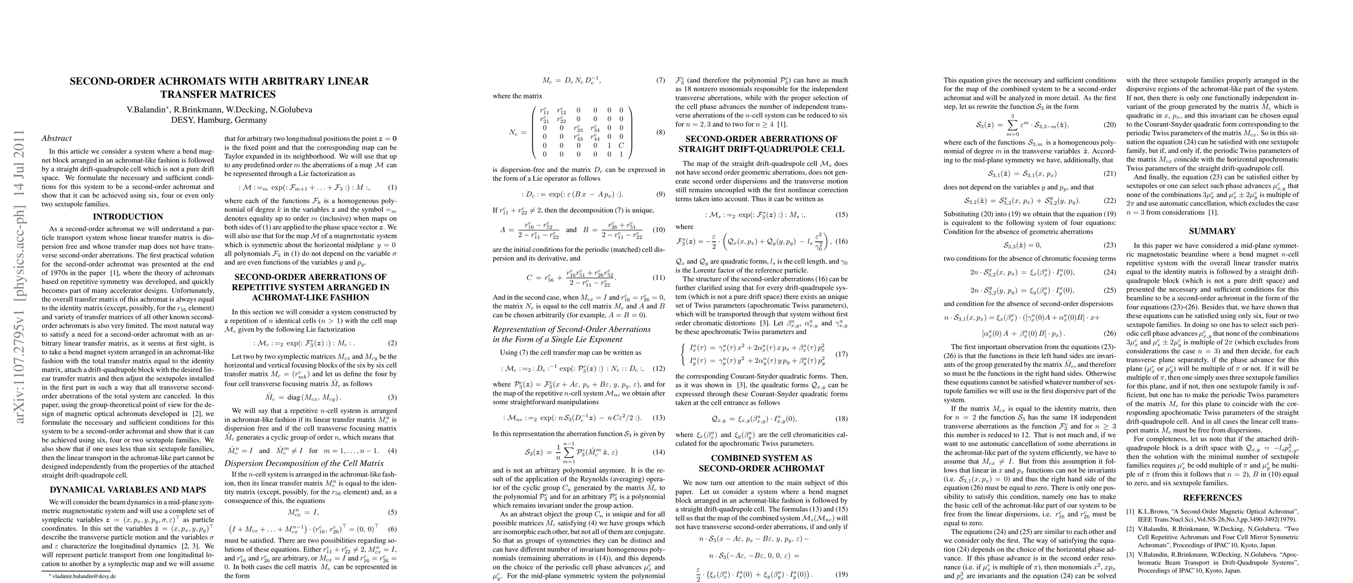 In this article we consider a system where a bend magnet block arranged in an achromat-like fashion is followed by a straight drift-quadrupole cell which is not a pure drift space. We formulate the necessary and sufficient conditions for this system to be a second-order achromat and show that it can be achieved using six, four or even only two sextupole families.