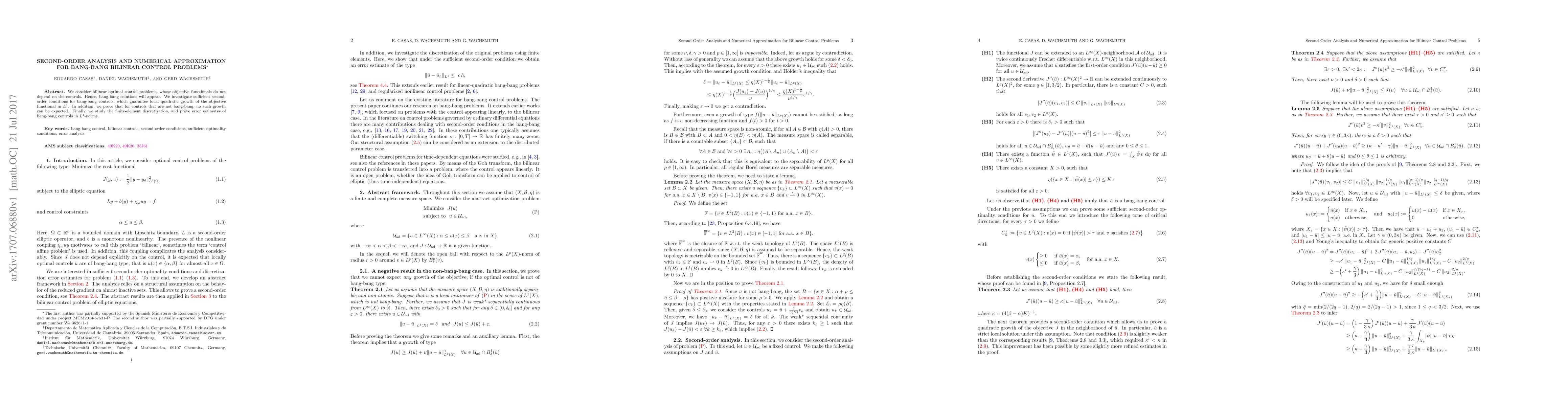 This paper investigates second-order conditions for bang-bang solutions in bilinear optimal control problems, proving that only such controls exhibit local quadratic growth. It also presents error estimates for finite-element discretizations of these bang-bang controls.