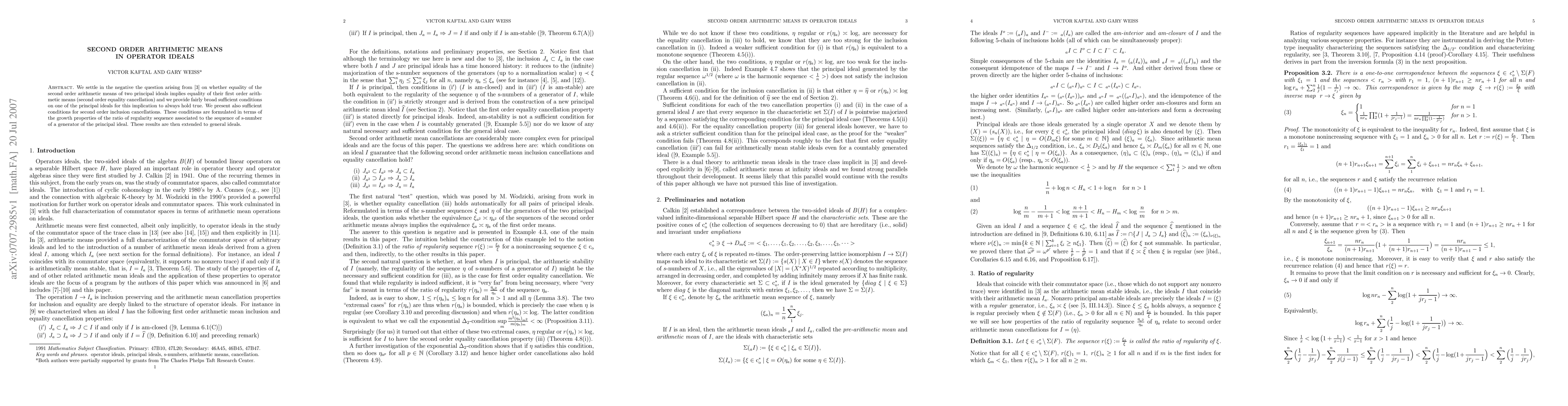 Equality of the second order arithmetic means of two principal ideals does not imply equality of their first order arithmetic means (second order equality cancellation). We provide fairly broad sufficient conditions on one of the principal ideals for this implication to hold true. We present also sufficient conditions for second order inclusion cancellations. These conditions are formulated in terms of the growth properties of the ratio of regularity sequence associated to the sequence of s-number of a generator of the principal ideal. These results are then extended to general ideals.