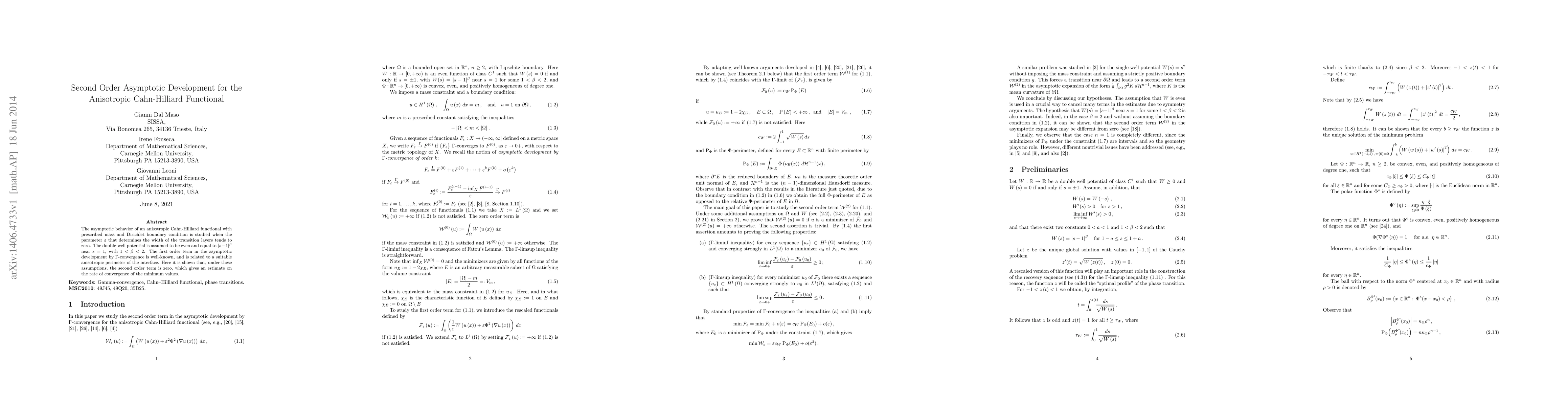 The asymptotic behavior of an anisotropic Cahn-Hilliard functional with prescribed mass and Dirichlet boundary condition is studied when the parameter epsilon that determines the width of the transition layers tends to zero. The double-well potential is assumed to be even and equal to |s-1|^b near s=1, with 1