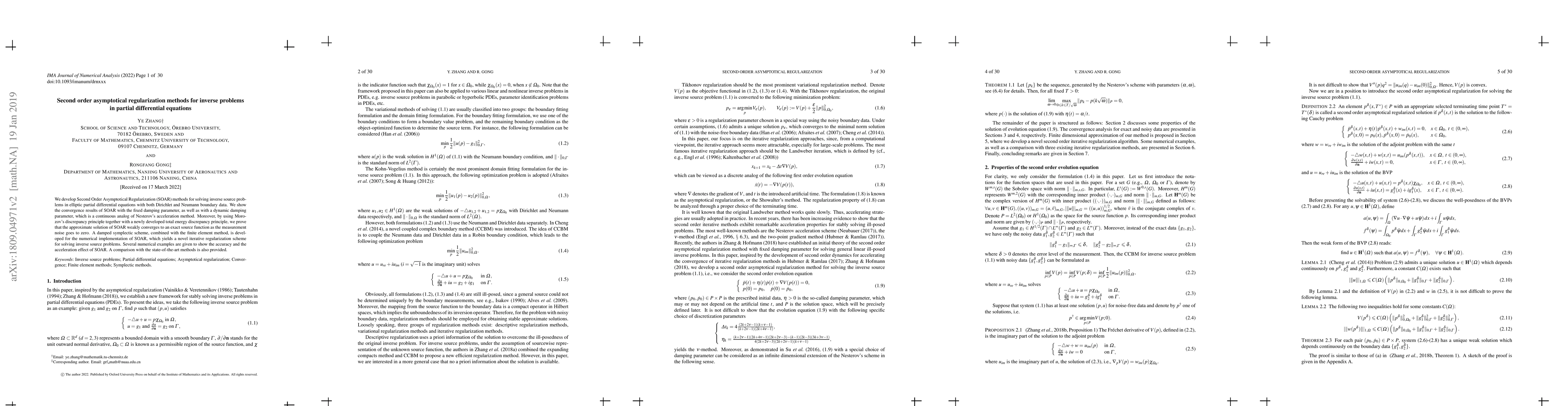 This paper introduces Second Order Asymptotical Regularization (SOAR) methods for solving inverse source problems in elliptic partial differential equations, demonstrating convergence with both fixed and dynamic damping parameters. The SOAR method is numerically implemented using a damped symplectic scheme and finite element method, showing improved accuracy and acceleration compared to existing methods.