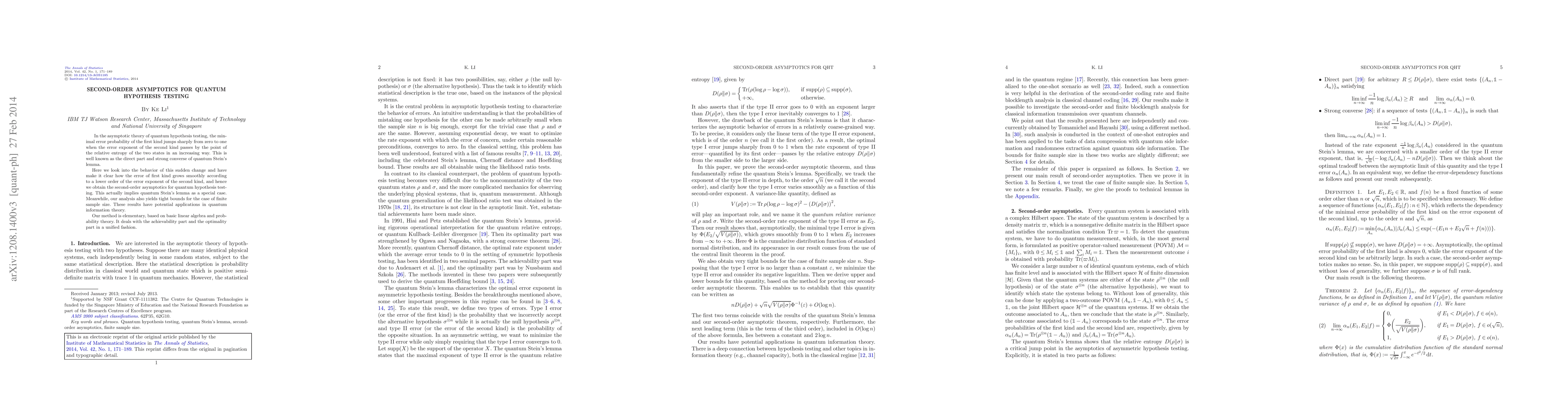 In the asymptotic theory of quantum hypothesis testing, the minimal error probability of the first kind jumps sharply from zero to one when the error exponent of the second kind passes by the point of the relative entropy of the two states in an increasing way. This is well known as the direct part and strong converse of quantum Stein's lemma. Here we look into the behavior of this sudden change and have make it clear how the error of first kind grows smoothly according to a lower order of the error exponent of the second kind, and hence we obtain the second-order asymptotics for quantum hypothesis testing. This actually implies quantum Stein's lemma as a special case. Meanwhile, our analysis also yields tight bounds for the case of finite sample size. These results have potential applications in quantum information theory. Our method is elementary, based on basic linear algebra and probability theory. It deals with the achievability part and the optimality part in a unified fashion.