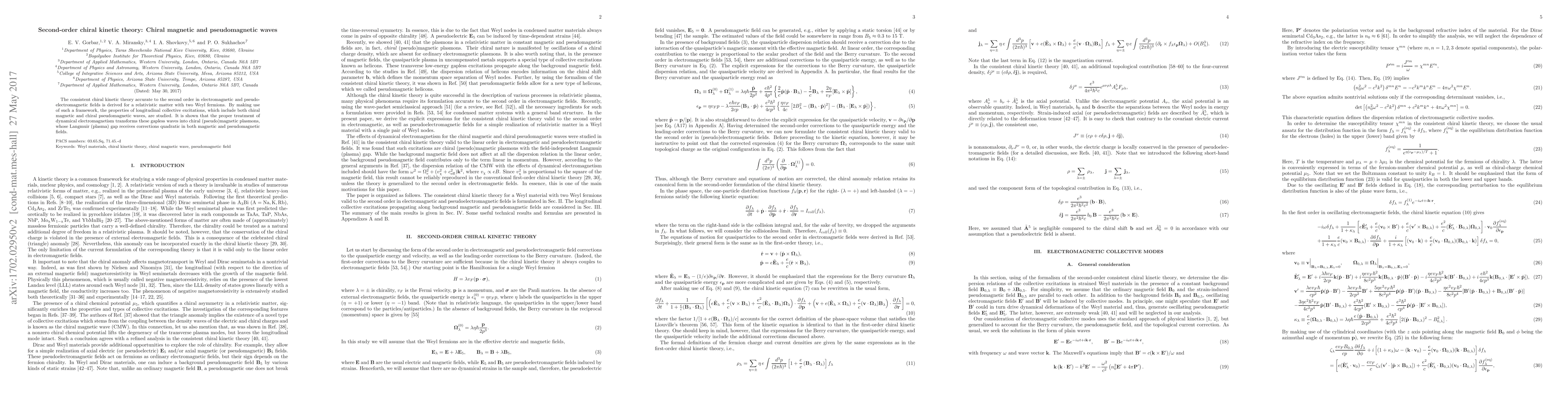 This paper develops a second-order chiral kinetic theory for relativistic matter with Weyl fermions, revealing that dynamical electromagnetism transforms chiral magnetic and pseudomagnetic waves into chiral plasmons with quadratic corrections to their plasma gaps in magnetic and pseudomagnetic fields.