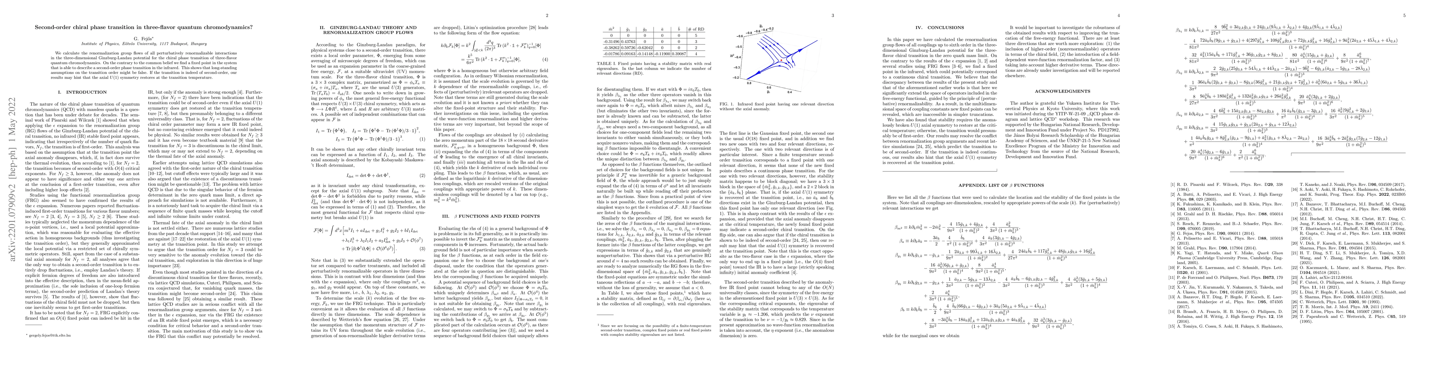 This study reveals a fixed point in the renormalization group flows of three-flavor quantum chromodynamics, suggesting a second-order chiral phase transition instead of the commonly assumed first-order. This finding challenges existing assumptions and implies potential restoration of axial $U(1)$ symmetry at the transition temperature.