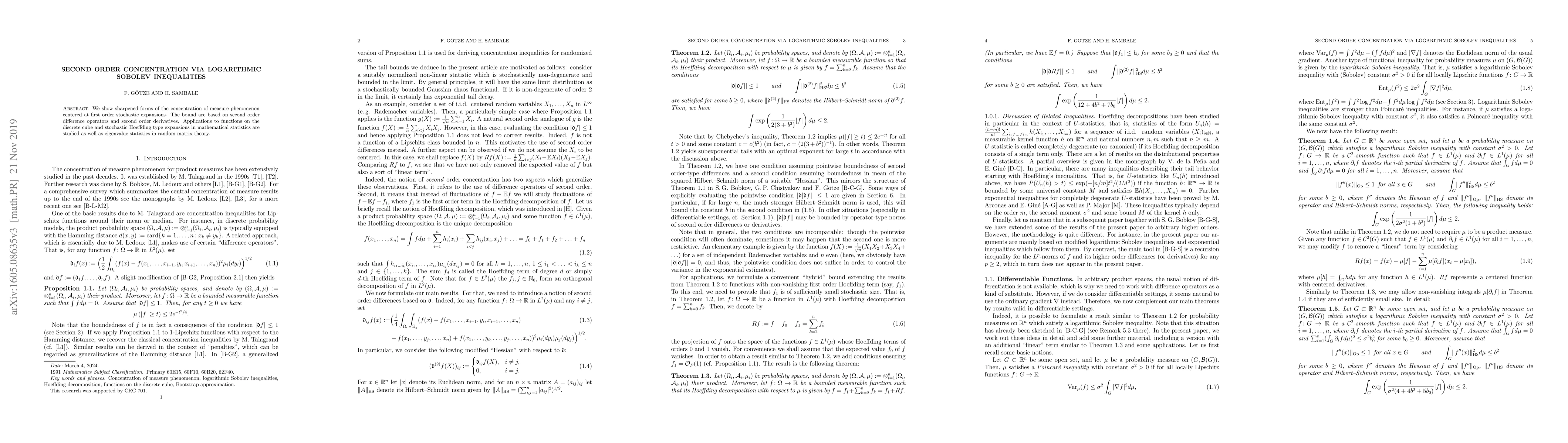 The paper employs techniques from logarithmic Sobolev inequalities to derive sharpened concentration bounds for stochastic expansions, utilizing second-order difference operators and derivatives.