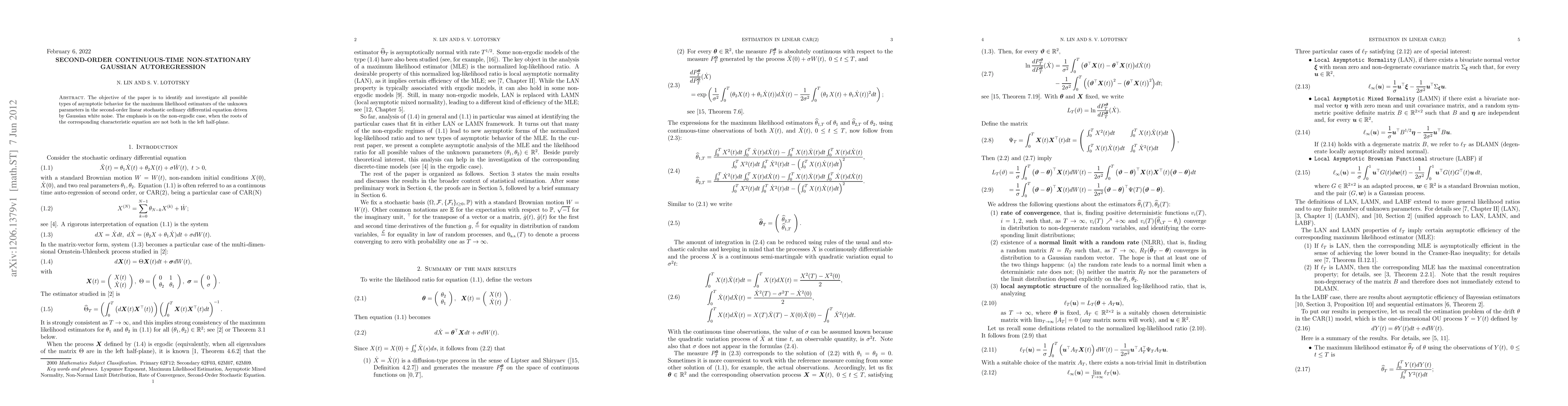 The objective of the paper is to identify and investigate all possible types of asymptotic behavior for the maximum likelihood estimators of the unknown parameters in the second-order linear stochastic ordinary differential equation driven by Gaussian white noise. The emphasis is on the non-ergodic case, when the roots of the corresponding characteristic equation are not both in the left half-plane.