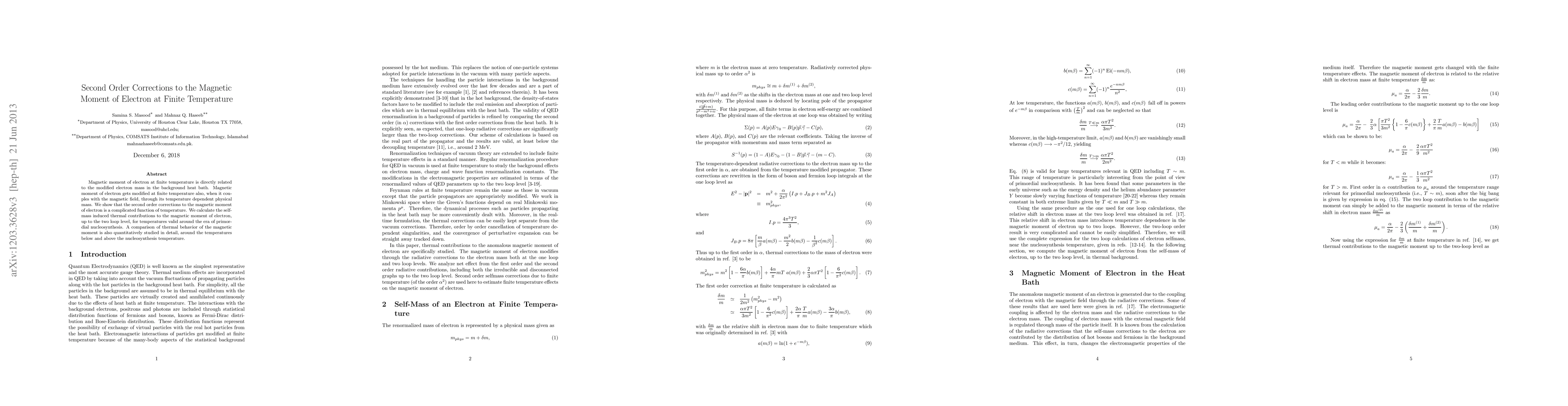 Magnetic moment of electron at finite temperature is directly related to the modified electron mass in the background heat bath. Magnetic moment of electron gets modified when it couples with the magnetic field at finite temperature through its temperature dependent physical mass. We show that the magnetic moment of electron becomes a complicated function of temperature and even change its temperature dependent behavior around the energies for primordial nucleosynthesis. We calculate the self-mass induced thermal contributions to the magnetic moment of electron, up to the two loop level, for temperatures valid around the era of primordial nucleosynthesis. A comparison of thermal behavior of the magnetic moment is also quantitatively studied in detail, around the temperatures below and above nucleosynthesis temperature range.