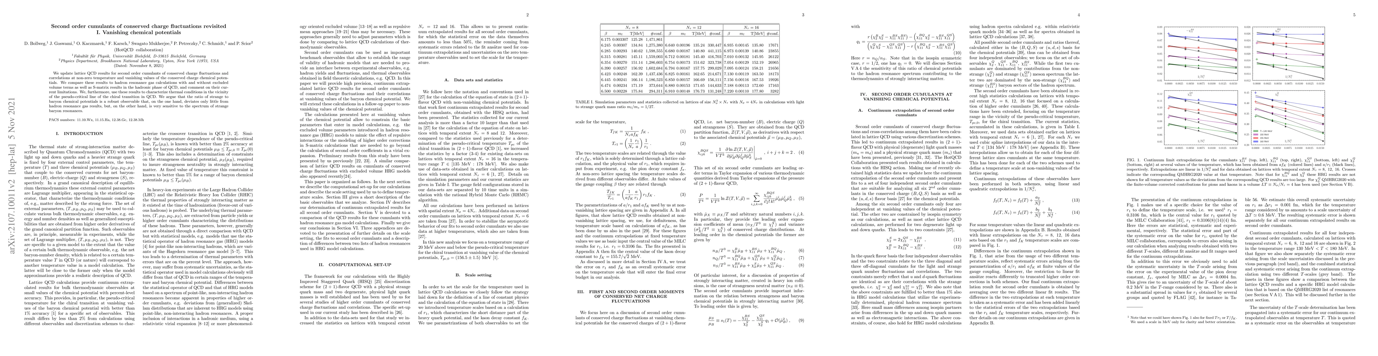 This research updates lattice QCD findings on second-order cumulants of conserved charge fluctuations at non-zero temperature with zero chemical potentials, comparing results to hadron resonance gas models and S-matrix results. It highlights the ratio of strange to baryon chemical potentials as a robust yet sensitive indicator near the pseudo-critical line of the chiral transition in QCD.