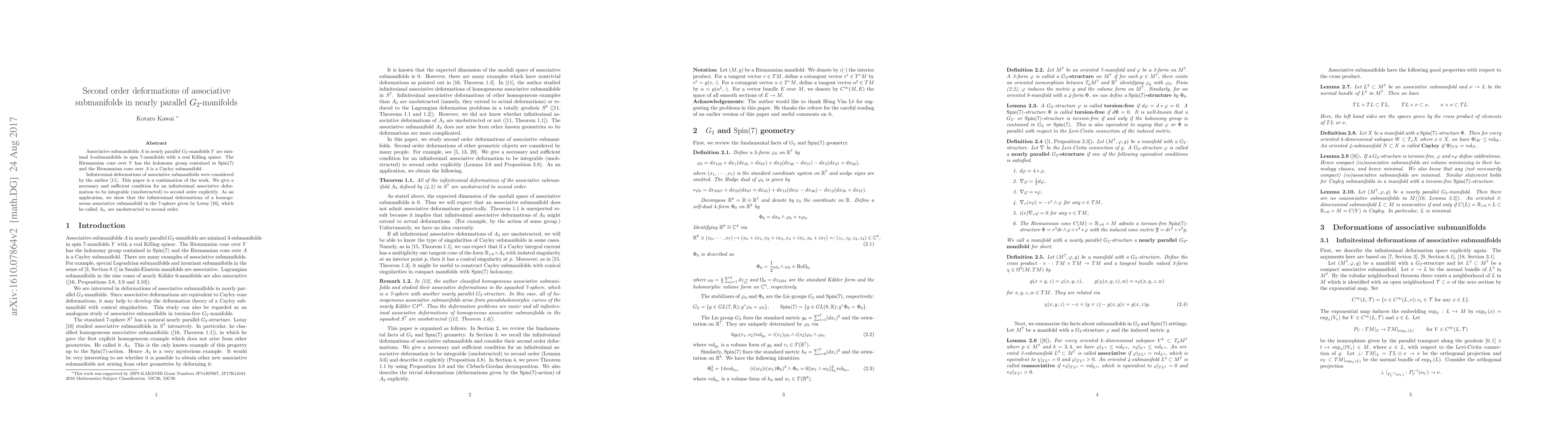 Associative submanifolds $A$ in nearly parallel $G_2$-manifolds $Y$ are minimal 3-submanifolds in spin 7-manifolds with a real Killing spinor. The Riemannian cone over $Y$ has the holonomy group contained in ${\rm Spin(7)}$ and the Riemannian cone over $A$ is a Cayley submanifold. Infinitesimal deformations of associative submanifolds were considered by the author. This paper is a continuation of the work. We give a necessary and sufficient condition for an infinitesimal associative deformation to be integrable (unobstructed) to second order explicitly. As an application, we show that the infinitesimal deformations of a homogeneous associative submanifold in the 7-sphere given by Lotay, which he called $A_3$, are unobstructed to second order.