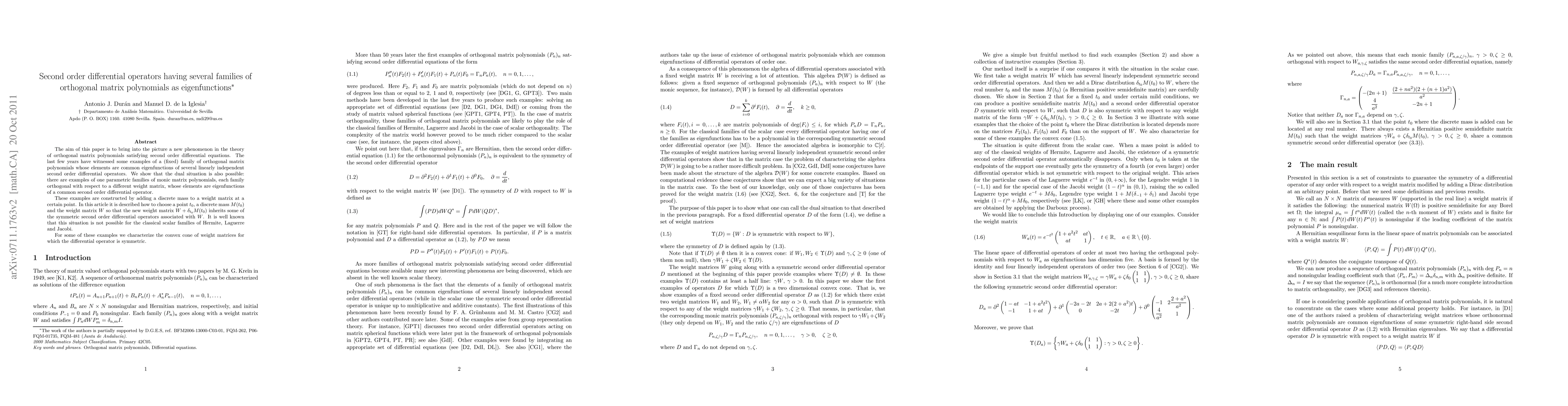 Researchers discovered that certain families of orthogonal matrix polynomials can be eigenfunctions of a common second-order differential operator when a discrete mass is added to the weight matrix.