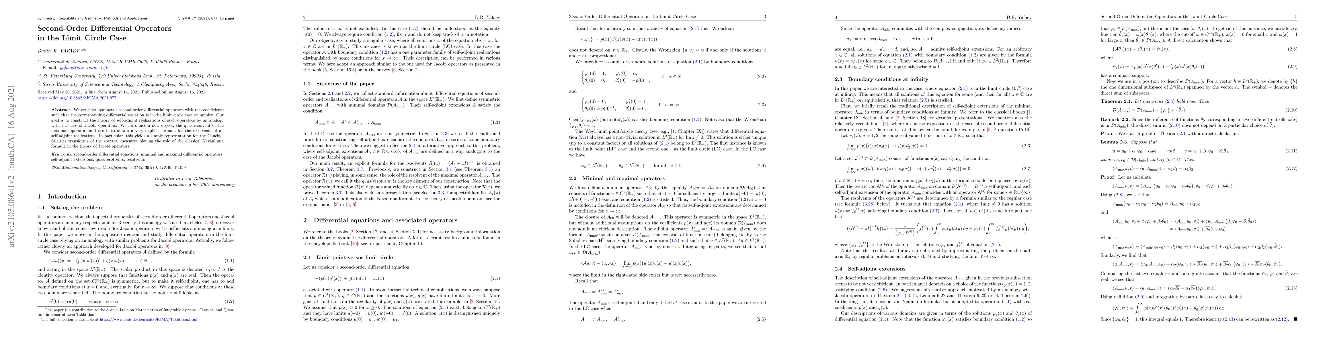 Researchers developed a new method to analyze symmetric second-order differential operators with real coefficients, enabling the construction of self-adjoint realizations through an analogy with Jacobi operators, leading to explicit formulas for resolvents and Cauchy-Stieltjes transforms.