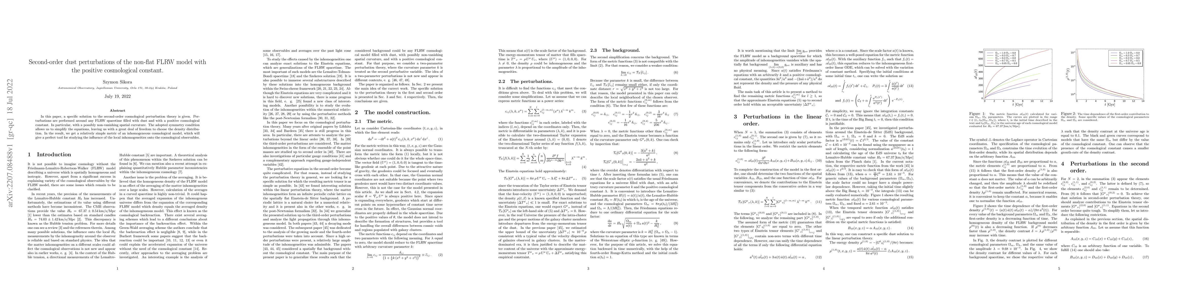 This paper presents a specific solution for second-order dust perturbations in a non-flat FLRW model with a positive cosmological constant, allowing for non-vanishing spatial curvature. The simplified equations provide a useful metric for studying the influence of local inhomogeneities on cosmological observables.