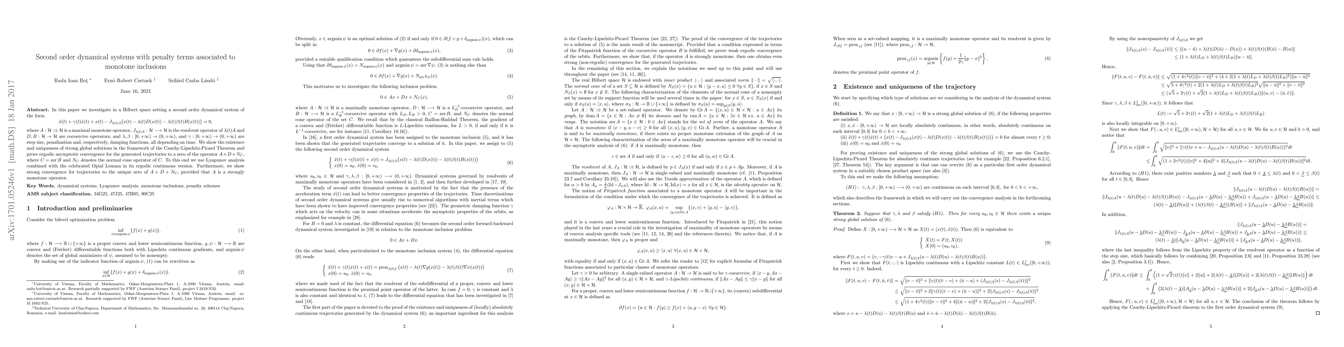 This paper studies a second-order dynamical system in a Hilbert space, proving the existence and uniqueness of strong global solutions using the Cauchy-Lipschitz-Picard Theorem. It also demonstrates ergodic asymptotic convergence to a zero of the operator $A+D+N_C$, leveraging Lyapunov analysis and the Opial Lemma.
