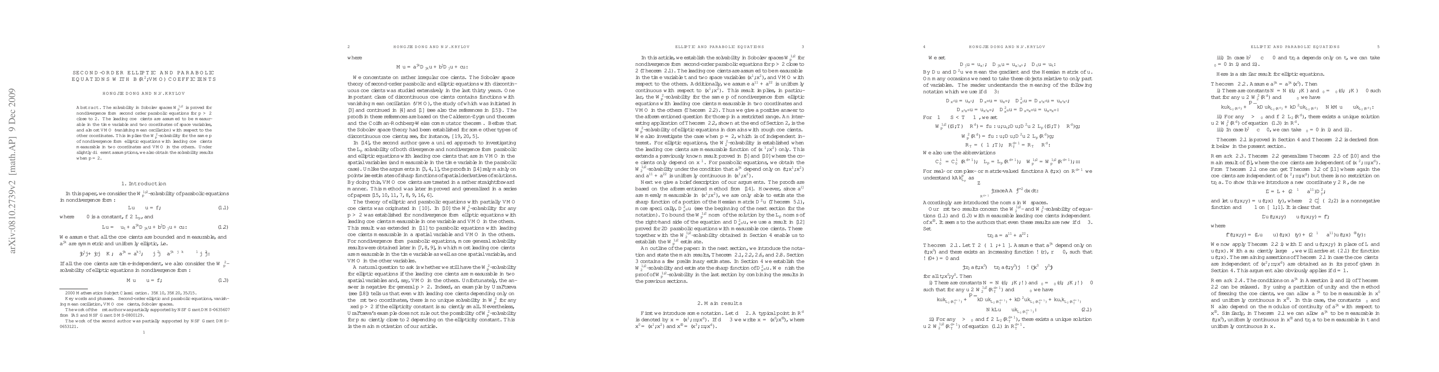 The solvability in Sobolev spaces $W^{1,2}_p$ is proved for nondivergence form second order parabolic equations for $p>2$ close to 2. The leading coefficients are assumed to be measurable in the time variable and two coordinates of space variables, and almost VMO (vanishing mean oscillation) with respect to the other coordinates. This implies the $W^{2}_p$-solvability for the same $p$ of nondivergence form elliptic equations with leading coefficients measurable in two coordinates and VMO in the others. Under slightly different assumptions, we also obtain the solvability results when $p=2$.