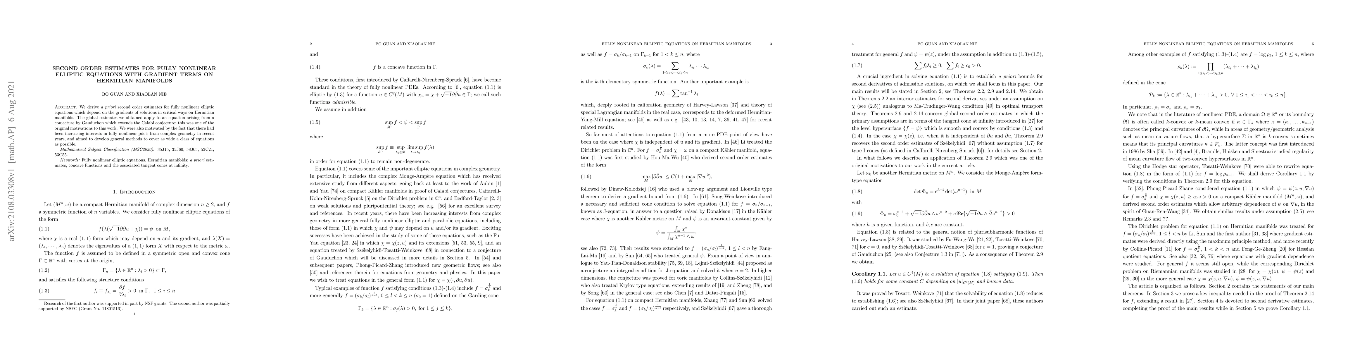 We derive a priori second order estimates for fully nonlinear elliptic equations which depend on the gradients of solutions in critical ways on Hermitian manifolds. The global estimates we obtained apply to an equation arising from a conjecture by Gauduchon which extends the Calabi conjecture; this was one of the original motivations to this work. We were also motivated by the fact that there had been increasing interests in fully nonlinear pde's from complex geometry in recent years, and aimed to develop general methods to cover as wide a class of equations as possible.