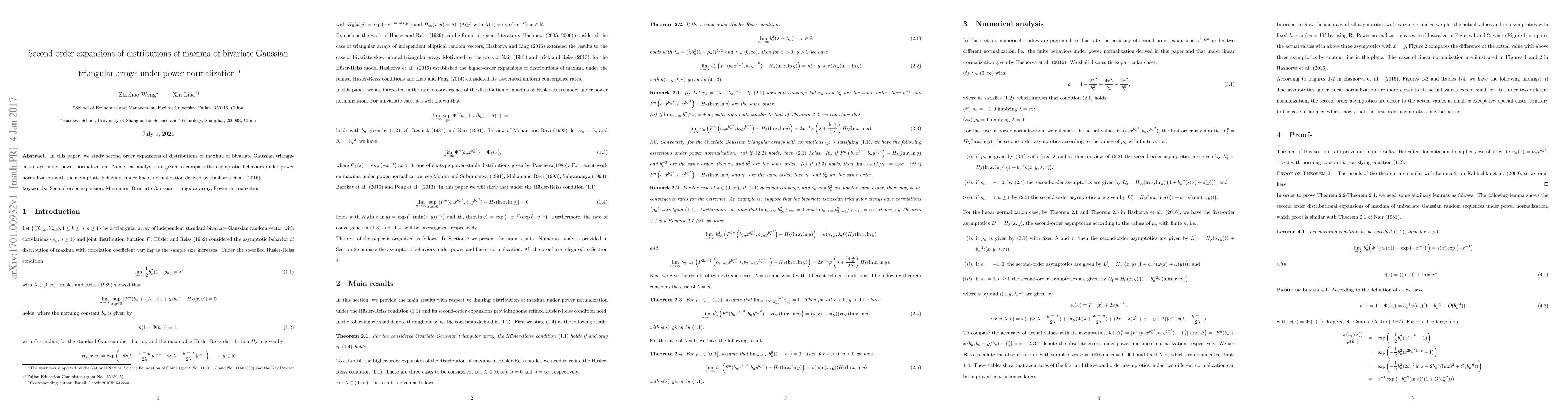 This paper investigates second order expansions of maxima distributions in bivariate Gaussian triangular arrays under power normalization, and conducts numerical analysis comparing these expansions to those under linear normalization previously established by Hashorva et al. (2016).