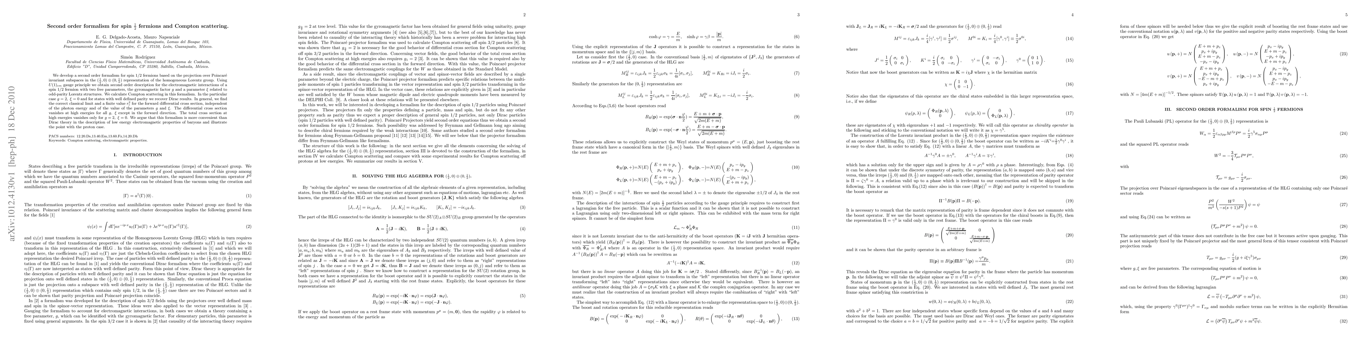 Researchers developed a second-order formalism for spin 1/2 fermions, enabling accurate calculations of Compton scattering and the electromagnetic interactions of fermions with two free parameters. The new framework provides a convenient alternative to Dirac theory for describing low-energy properties of baryons.