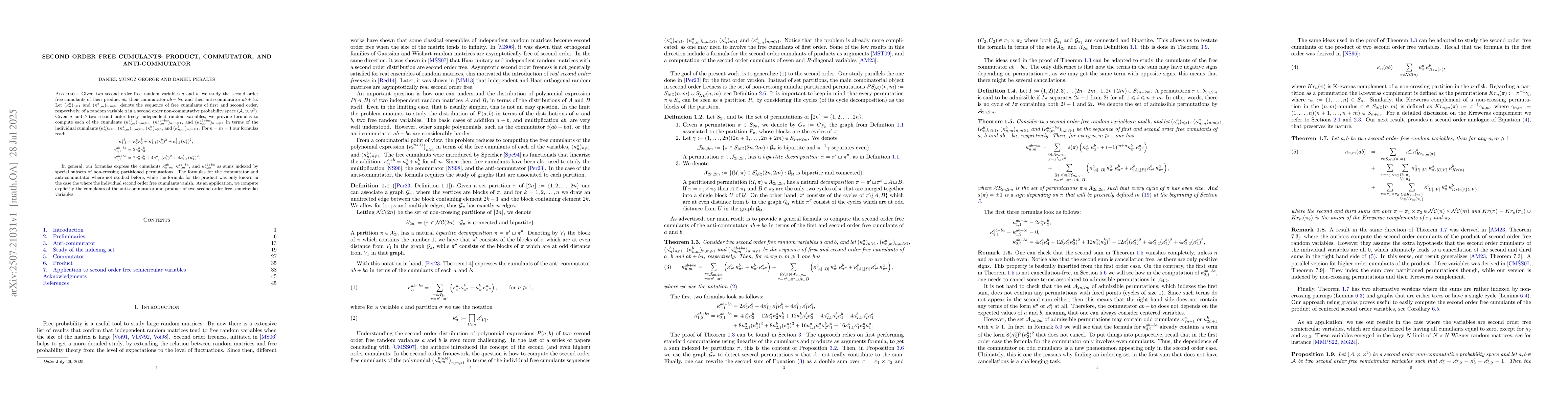The paper introduces detailed formulas for second-order free cumulants of products, commutators, and anti-commutators, extending previous work on free cumulants to these specific constructs.