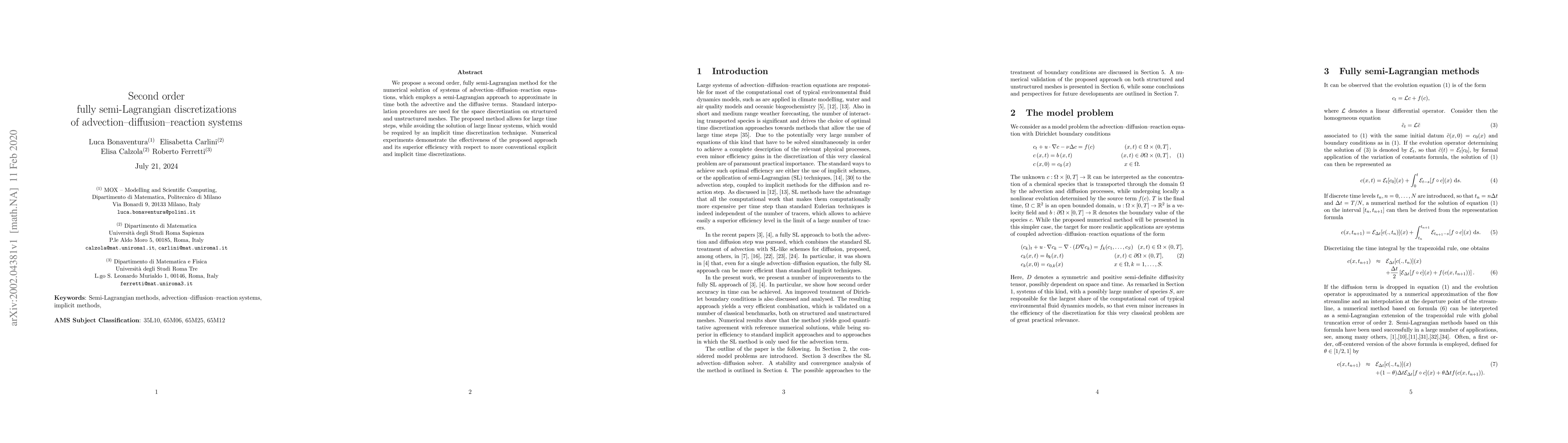 This paper proposes a second-order fully semi-Lagrangian method for solving advection-diffusion-reaction systems, effectively approximating both advective and diffusive terms in time. The method demonstrates superior efficiency and allows large time steps without requiring large linear system solutions, as shown through numerical experiments.